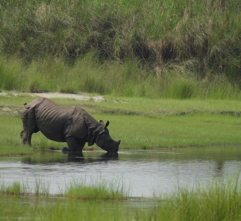 En saison sèche, la rivière attire une incroyable diversité d’animaux venus s’abreuver ou se rafraîchir sur ses berges : tigres discrets, rhinocéros solitaires, éléphants majestueux ... Vous croiserez peut-être des loutres en pleine pêche ou un crocodile dérivant entre deux eaux.
